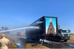Uma carreta que transportava algodão pegou fogo nesta na manhã desta quinta-feira (28) na rodovia 267, em Bataguassu, Mato Grosso...
