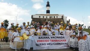 Um grupo de profissionais que atuam no Carnaval de Salvador reuniram-se neste domingo (21), no Farol da Barra, manifestando a...