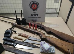 Guarnições da Polícia Militar em Dias D'Ávila apreenderam na madrugada do domingo (25), duas espingardas e meio tablete de cocaína....