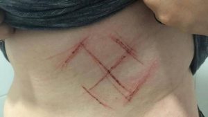A Polícia Civil do Rio Grande do Sul concluiu que os cortes em forma de suástica feitos em uma jovem que disse...